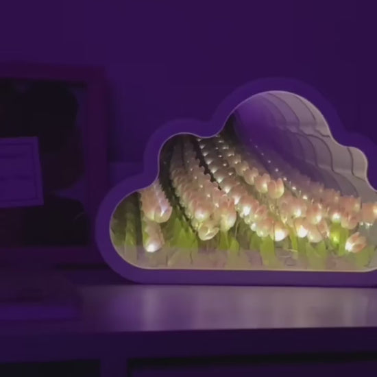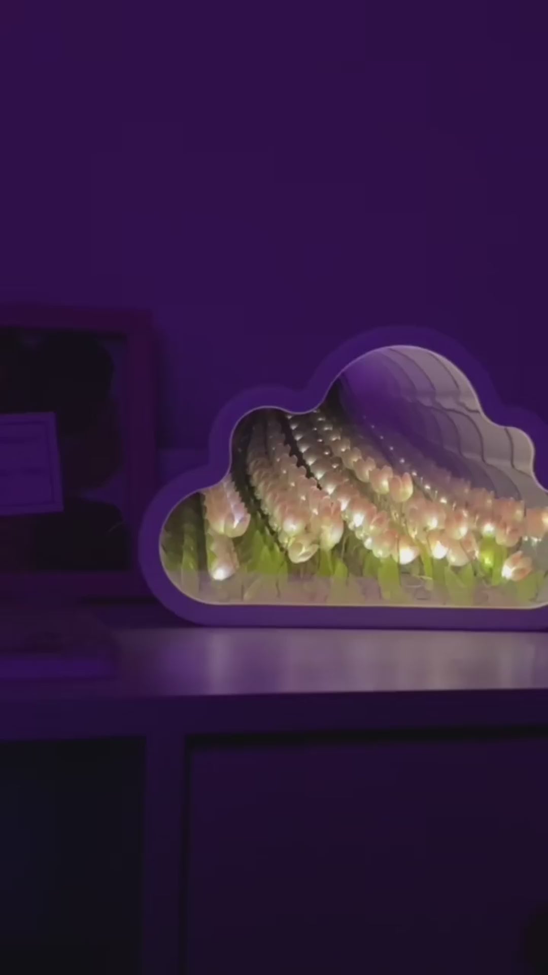 Disfruta de una luz cálida y decorativa con forma de tulipanes reflejados en el espejo.
